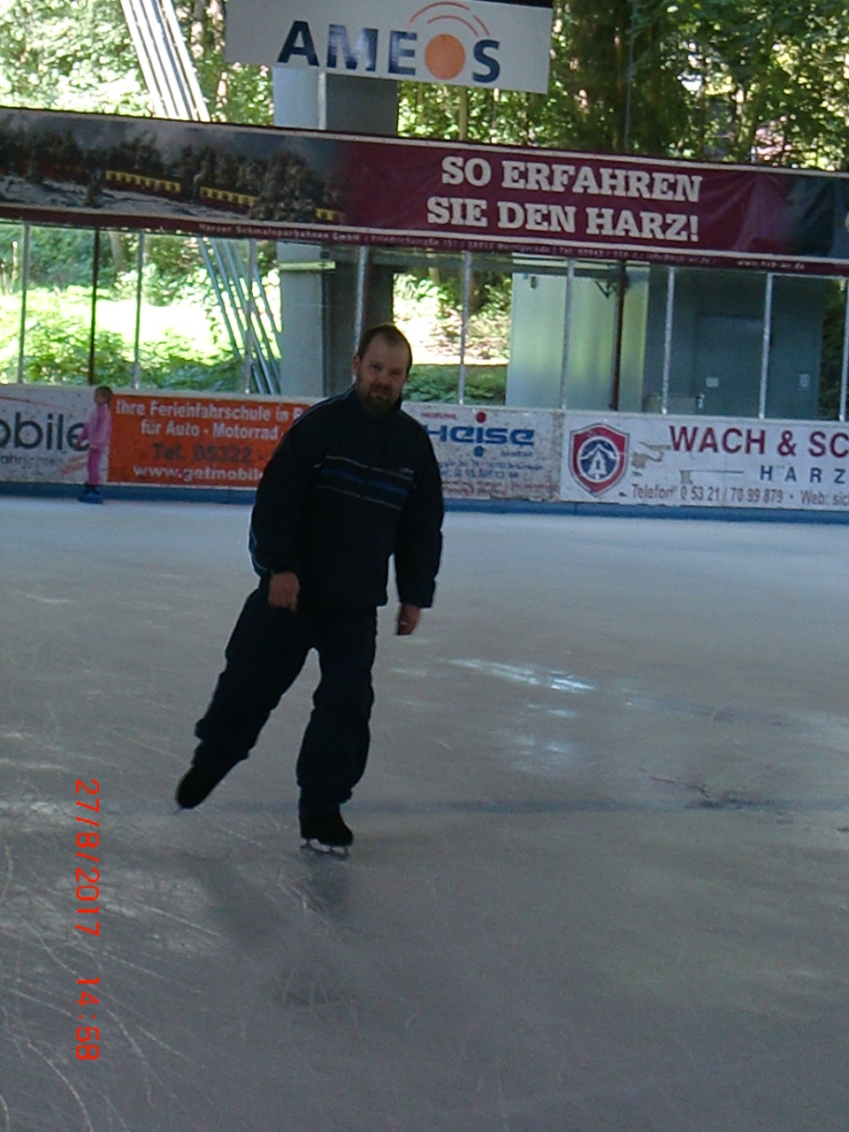 geliehenen Schlittschuhen) draußen auf dem Eis war - wie wohl die