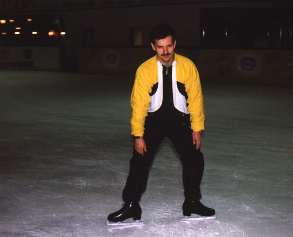 Wir gingen hinein, es machte plötzlich richtig Spaß (die Bedingungen einer Halle sind doch besser als auf irgendeinem Teich), ich ging nochmals hin und beim dritten Mal kaufte ich eine 12-er-Karte und es hatte mich richtig erwischt! Den Rest der Saison war ich dann 5 bis 6 Mal die Woche auf dem Eis, ein neues Hobby war geboren. Kurze Zeit später nervte es mich beim Zuschauen einer Fersehübertragung, daß der Reporter bei jedem Sprung einen anderen Namen nannte, obwohl doch alle gleich aussahen. Ich kaufte mir ein Buch und lernte die Unterschiede. Dabei blieb es nicht aus, daß ich auch einfachere Übungen zu lesen bekam. Ich probierte (siehe Bild),